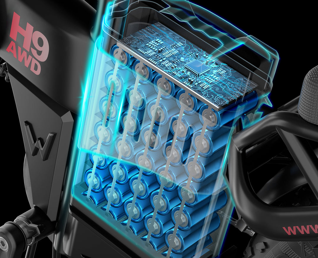 With a massive battery capacity, riders have the flexibility to explore new routes and travel longer distances without worrying about running out of battery power. It comes with a single rear battery. If you interested in going extra miles on your H9 AWD, you can select our dual battery kit that allow you to double your range.