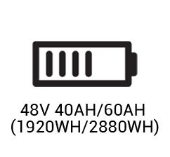 - Battery: 40AH 1920Wh / 2880Wh removable Lithium battery (40/60AH option)