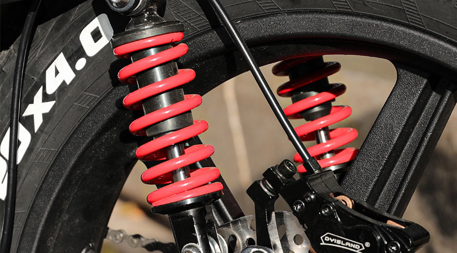 The dual rear shocks is unique and innovative, like an early era motorcycle. The trails you ride vary from asphalt to dirt, to rocks and the suspension on the bike is a real winner.